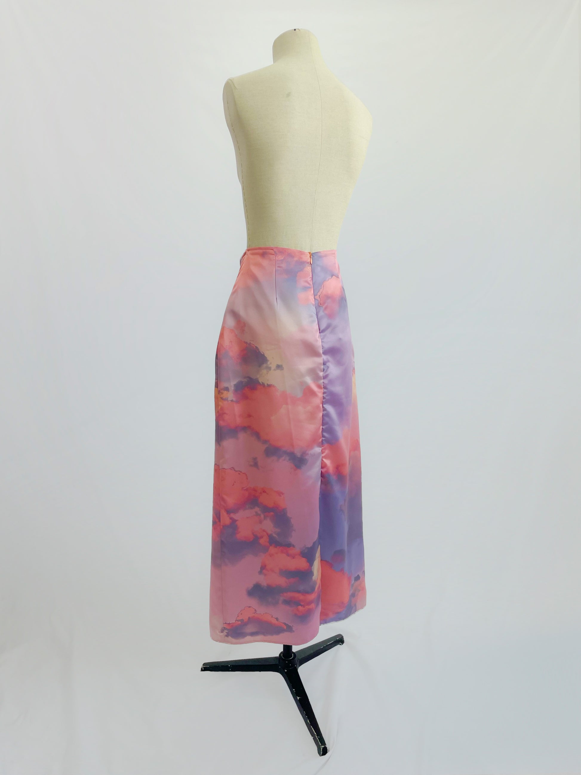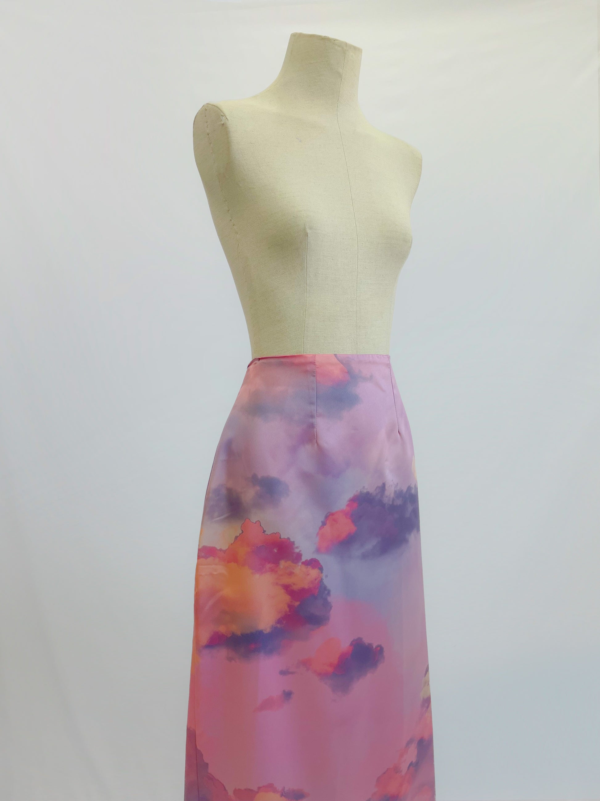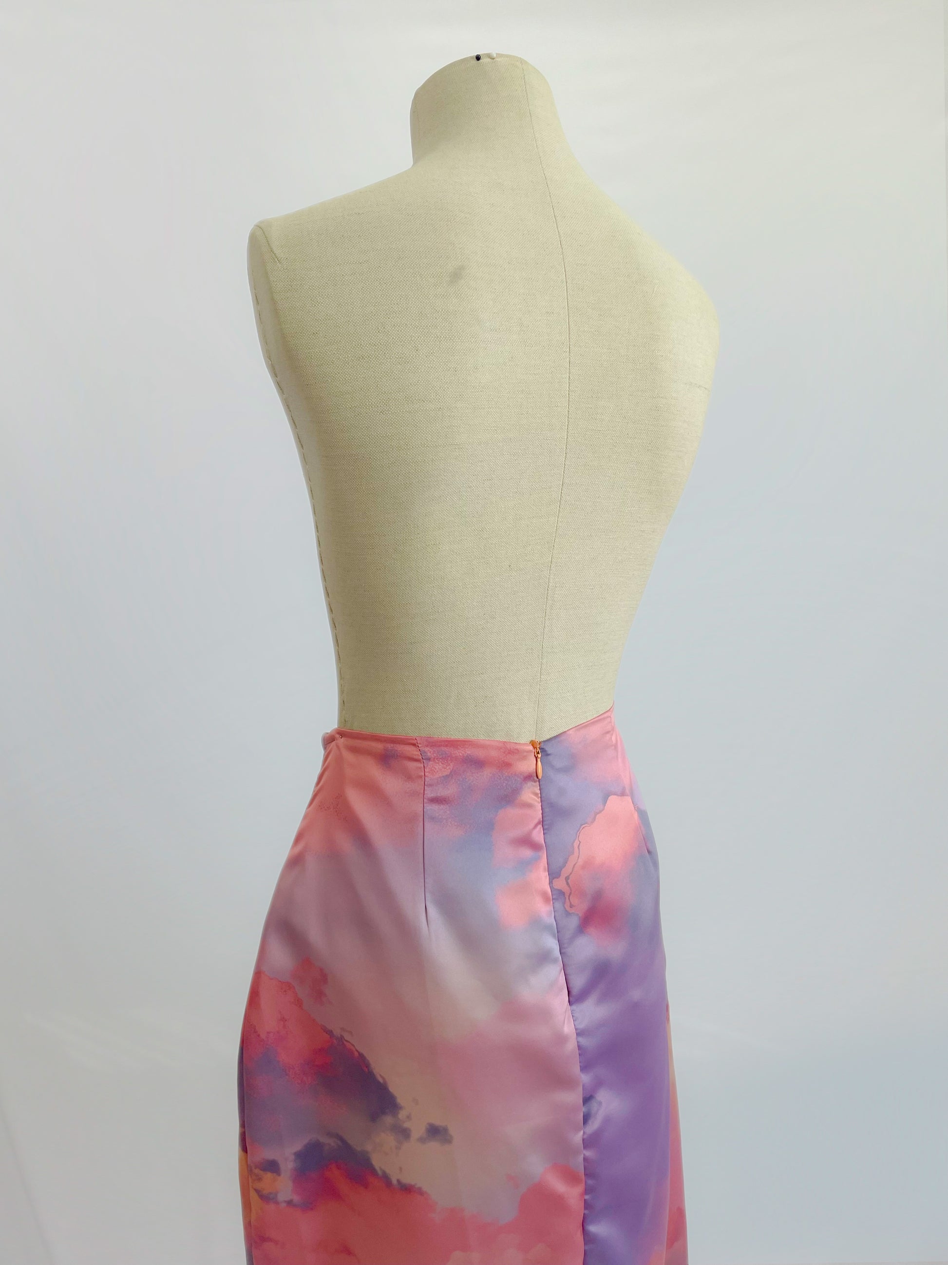 Straight cut with an invisible zipper at the back and a back slit for greater comfort while walking.