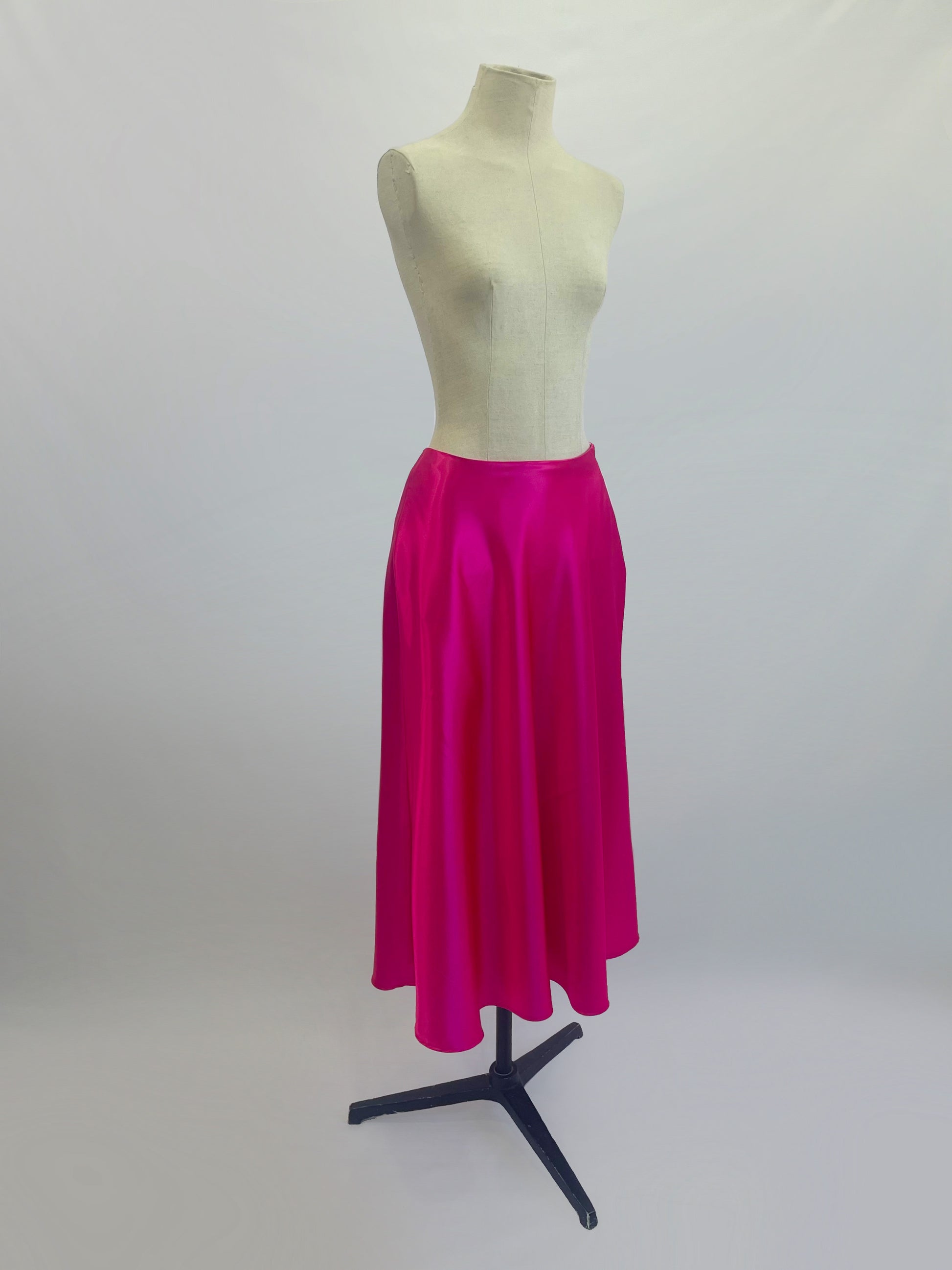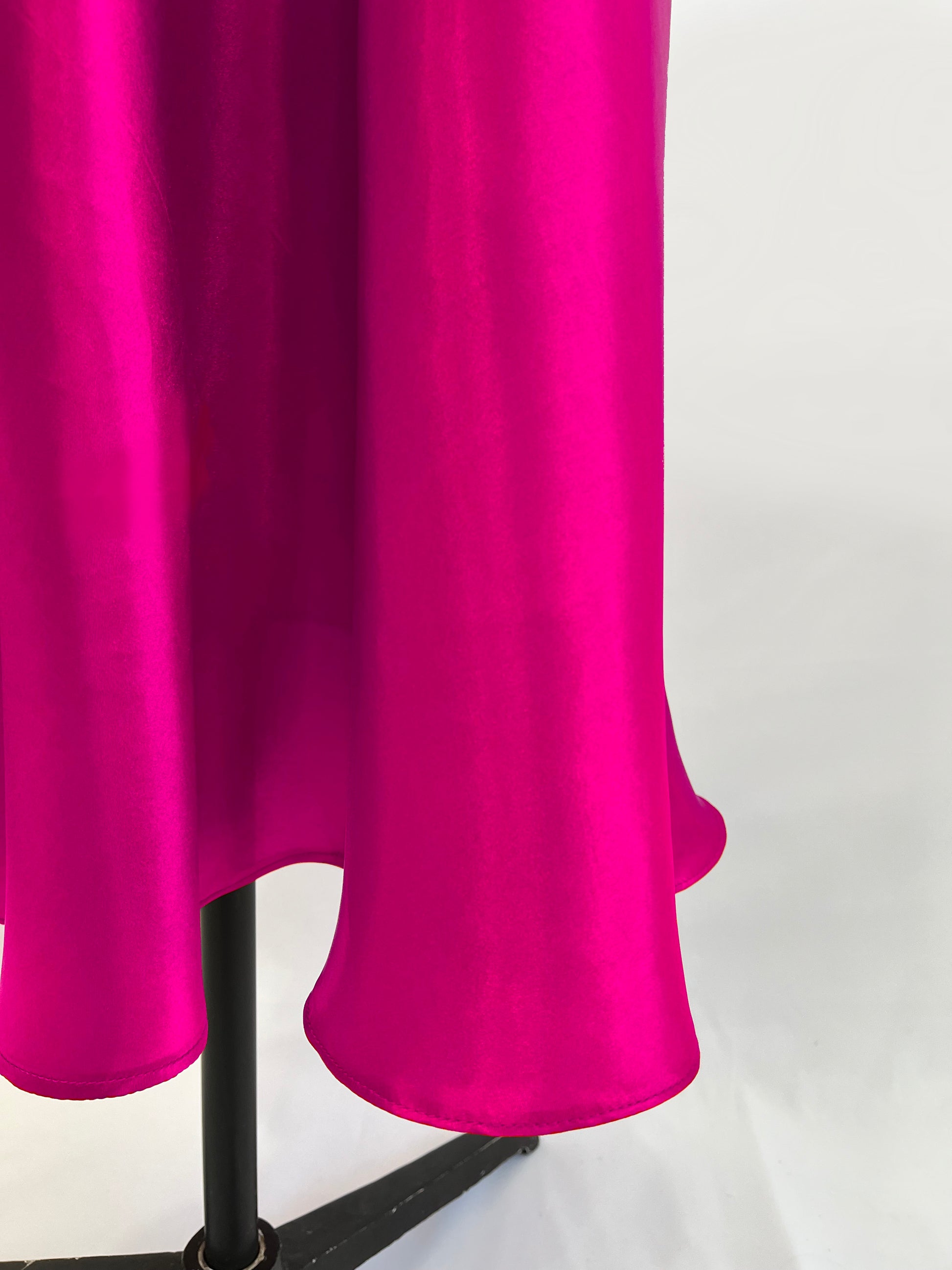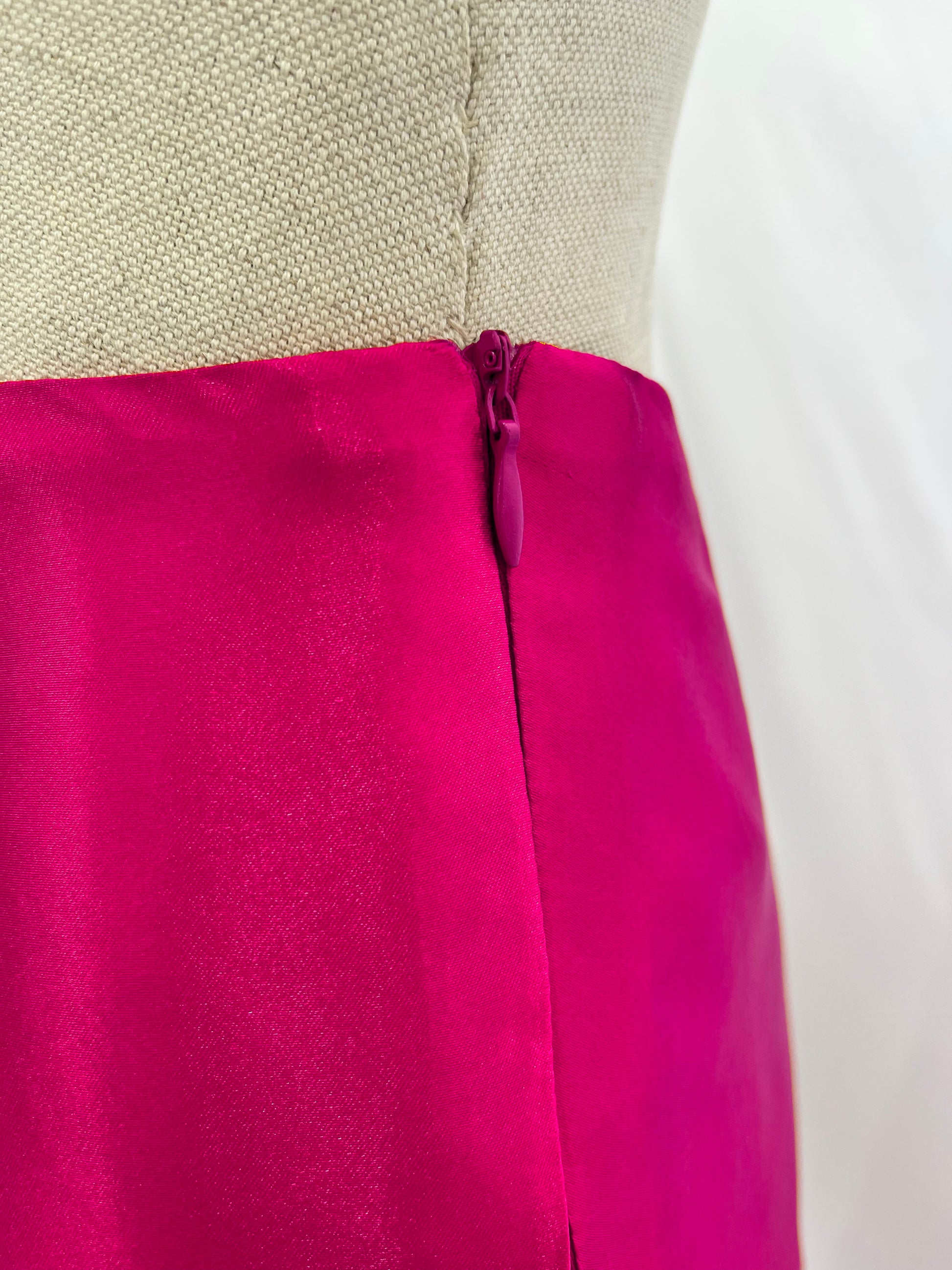 Corte al sesgo en línea A con zipper lateral invisible del lado izquierdo.