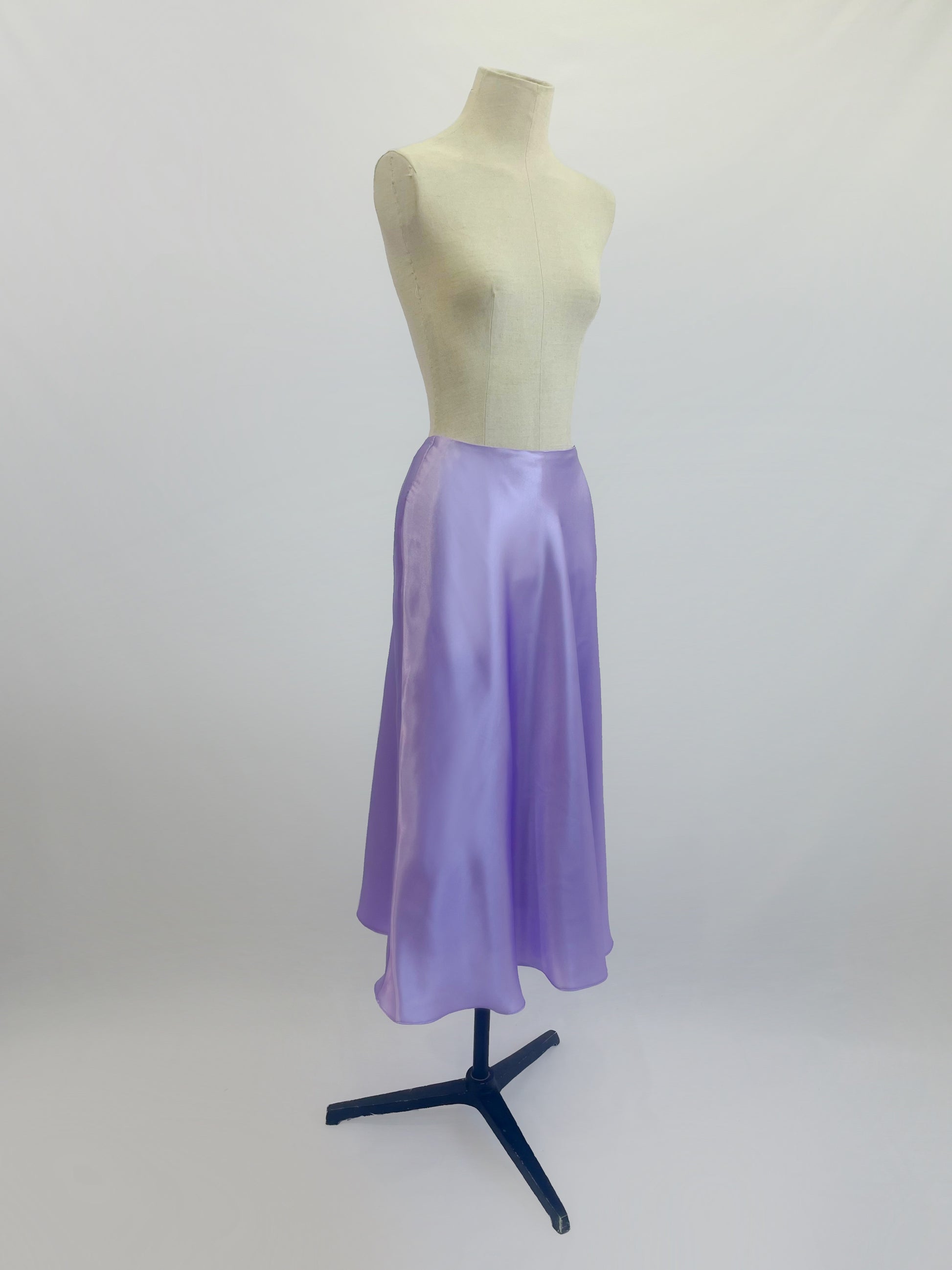Corte al sesgo en línea A con zipper lateral invisible del lado izquierdo.